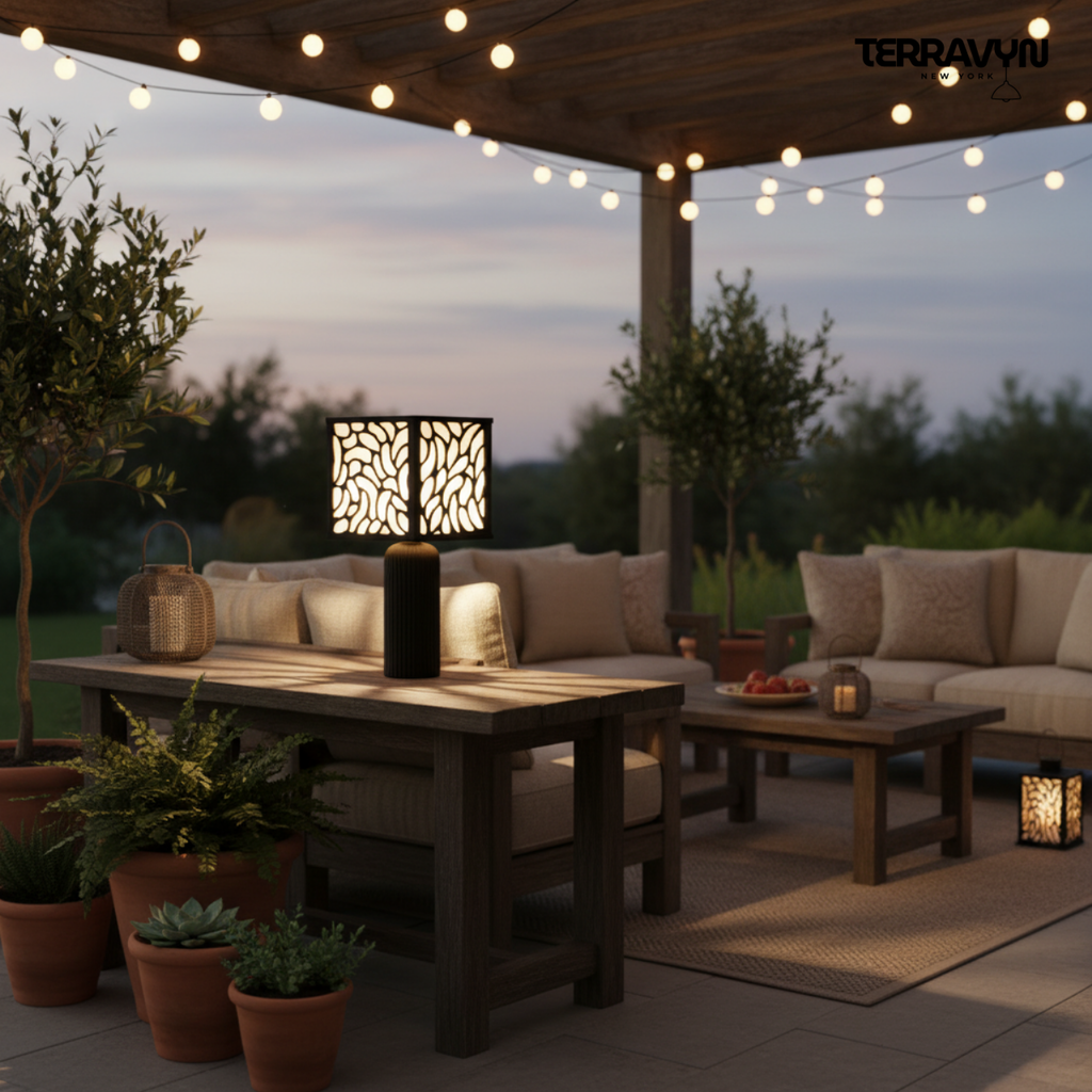 Zenaura Lamp – Modern Table Lamp, Organic Pattern Shade, Minimalist Black Desk Lamp, Ambient Lighting